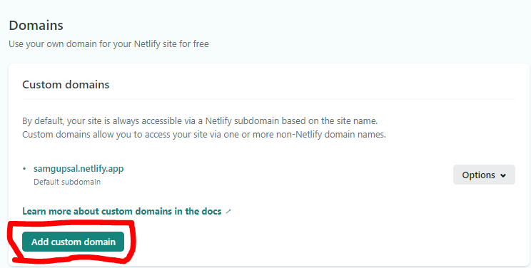 10. 아까 만들었던 사이트를 선택 -> Domain settings 클릭 -> Add custom domain
